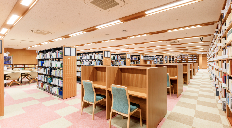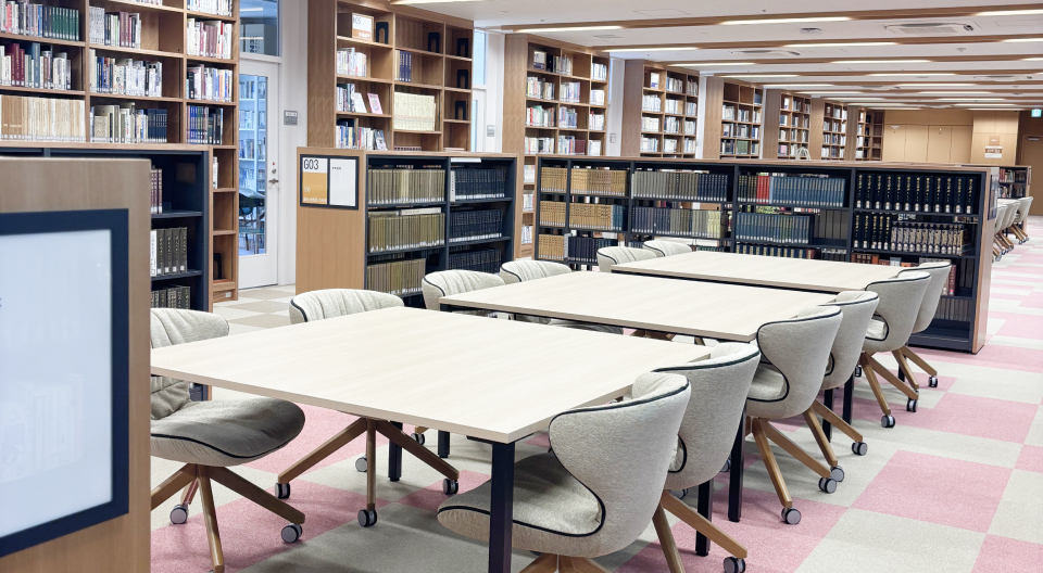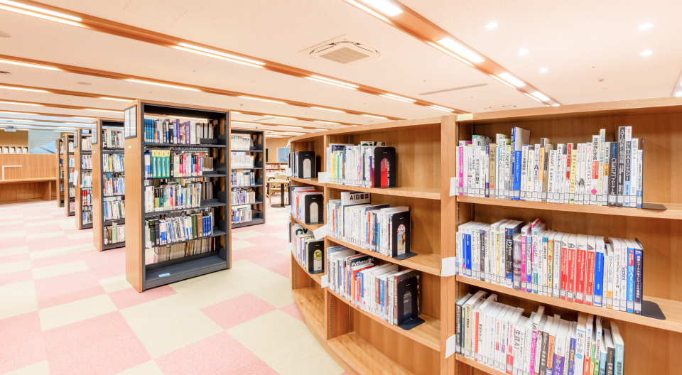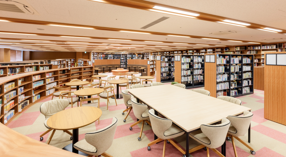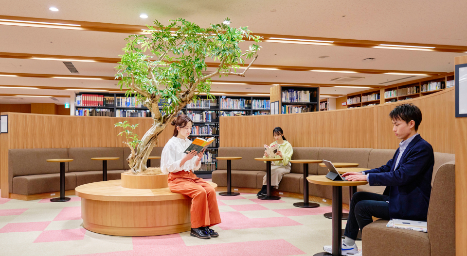 フロア全体を本で囲み、本の中で学ぶ空間を演出しています。