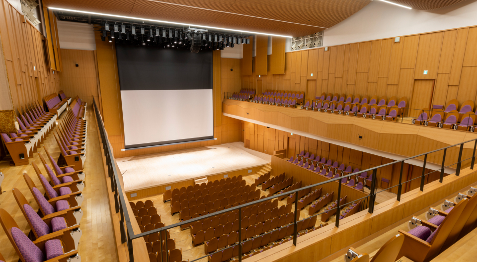 大講義室は800人収容が可能です。音響設備を備えた音楽ホールとしても利用可能です。